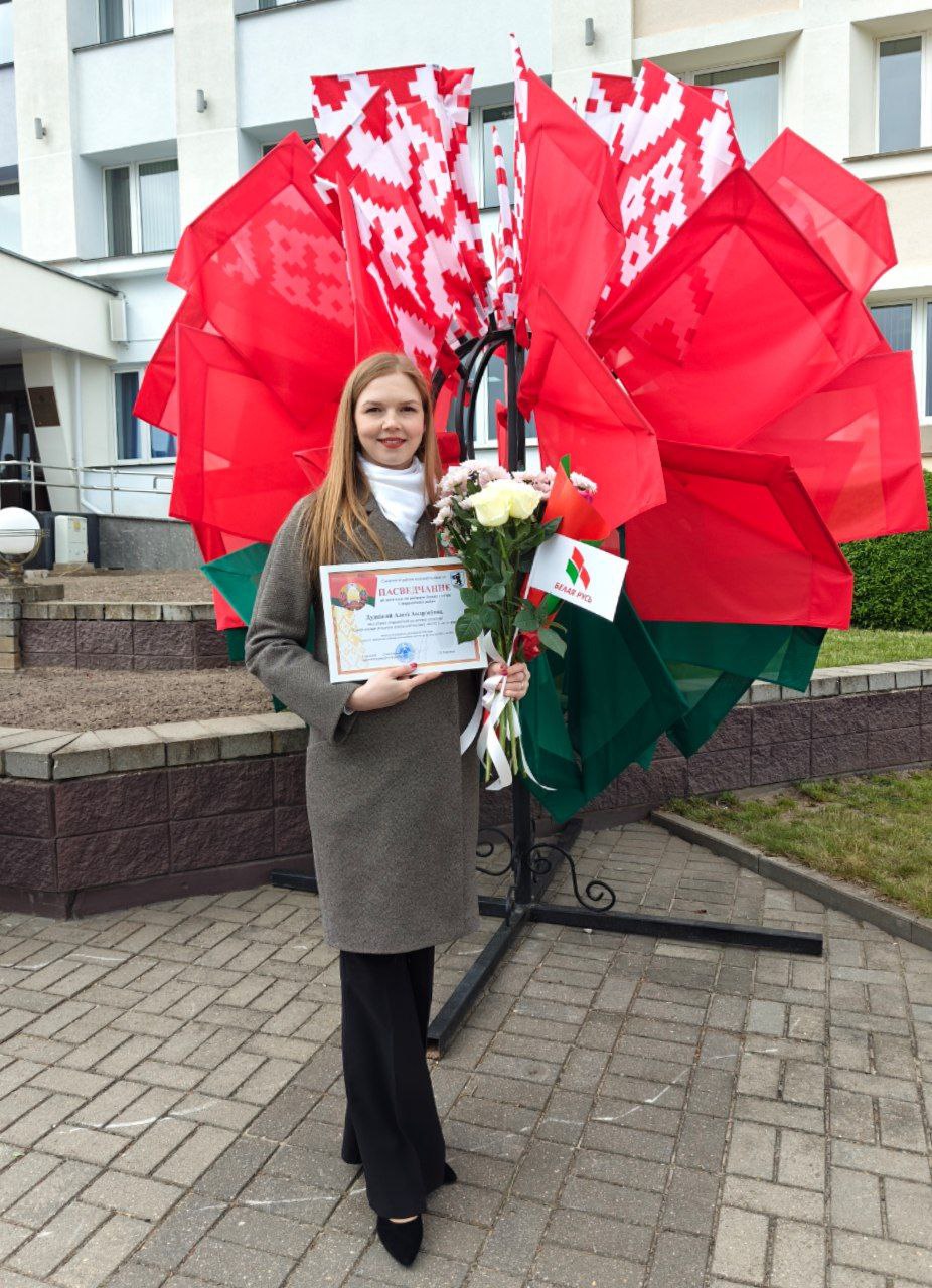 Фотопортрет учителя ГУО"Сморгонская детская школа искусств им.М.К.Огинского", члена ОО "Белая Русь" Дудкиной Алеси Андреевны занесен на районную Доску почета по итогам работы за 2024 год.