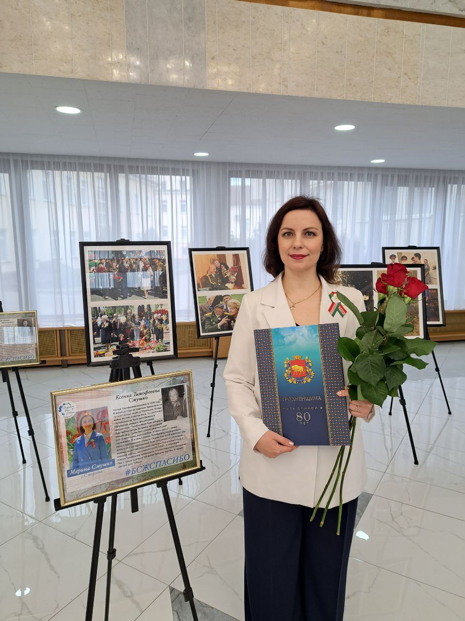 Учитель Сморгонской ДШИ, член ОО"БСЖ" Марина Смушко вместе с другими участниками челленджа "Спасибо бабушке и деду за Великую Победу" приняла участие в презентации международного проекта "Мой род - моя гордость. Военные страницы истории" для делегации Калининградской области и участников пленарного заседания международного проекта "Великая победа: одна на всех" в Гродно.