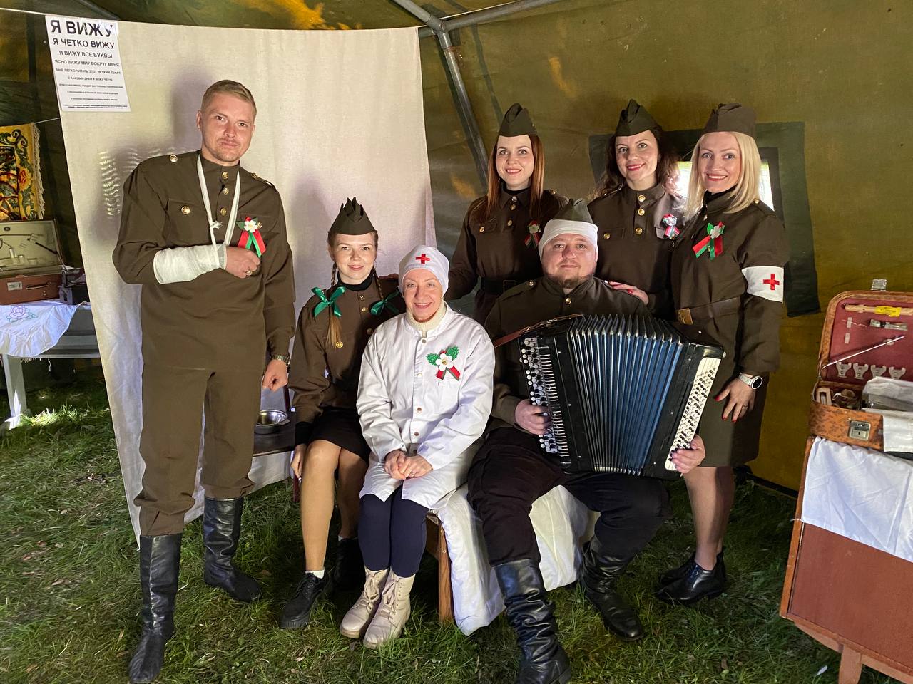 В городском парке работала интерактивная площадка "Военный госпиталь", которую подготовила Сморгонская ДШИ.