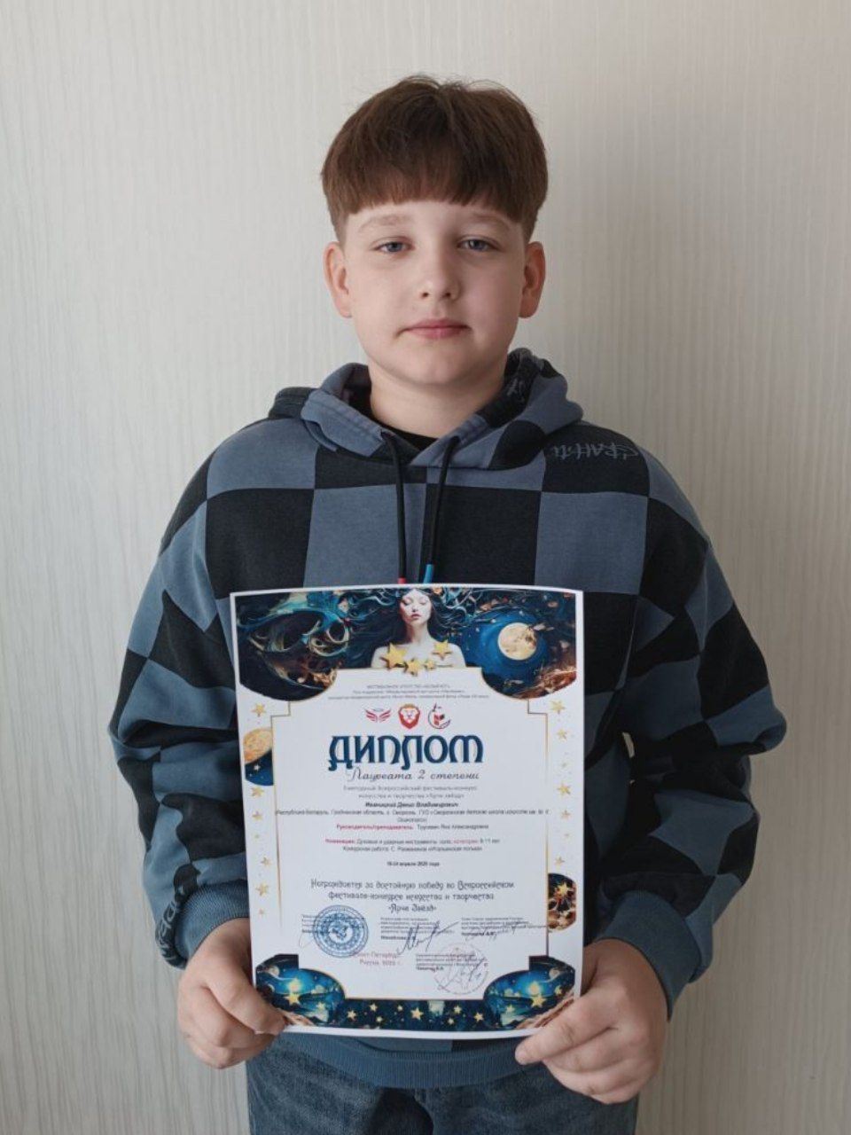 Поздравляем учащегося Сморгонской детской школы искусств Иваницкого Дениса со званием Лауреата 2 степени на Всероссийском фестивале-конкурсе искусства и творчества "Ярче звёзд".