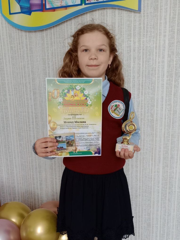 Монид Милана - Лауреат 3 степени (учитель Ольга Шапошникова, концертмейстер Ольга Павлюк);