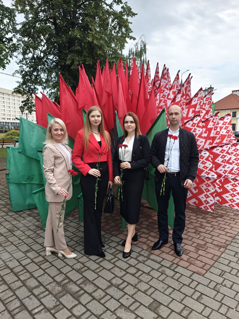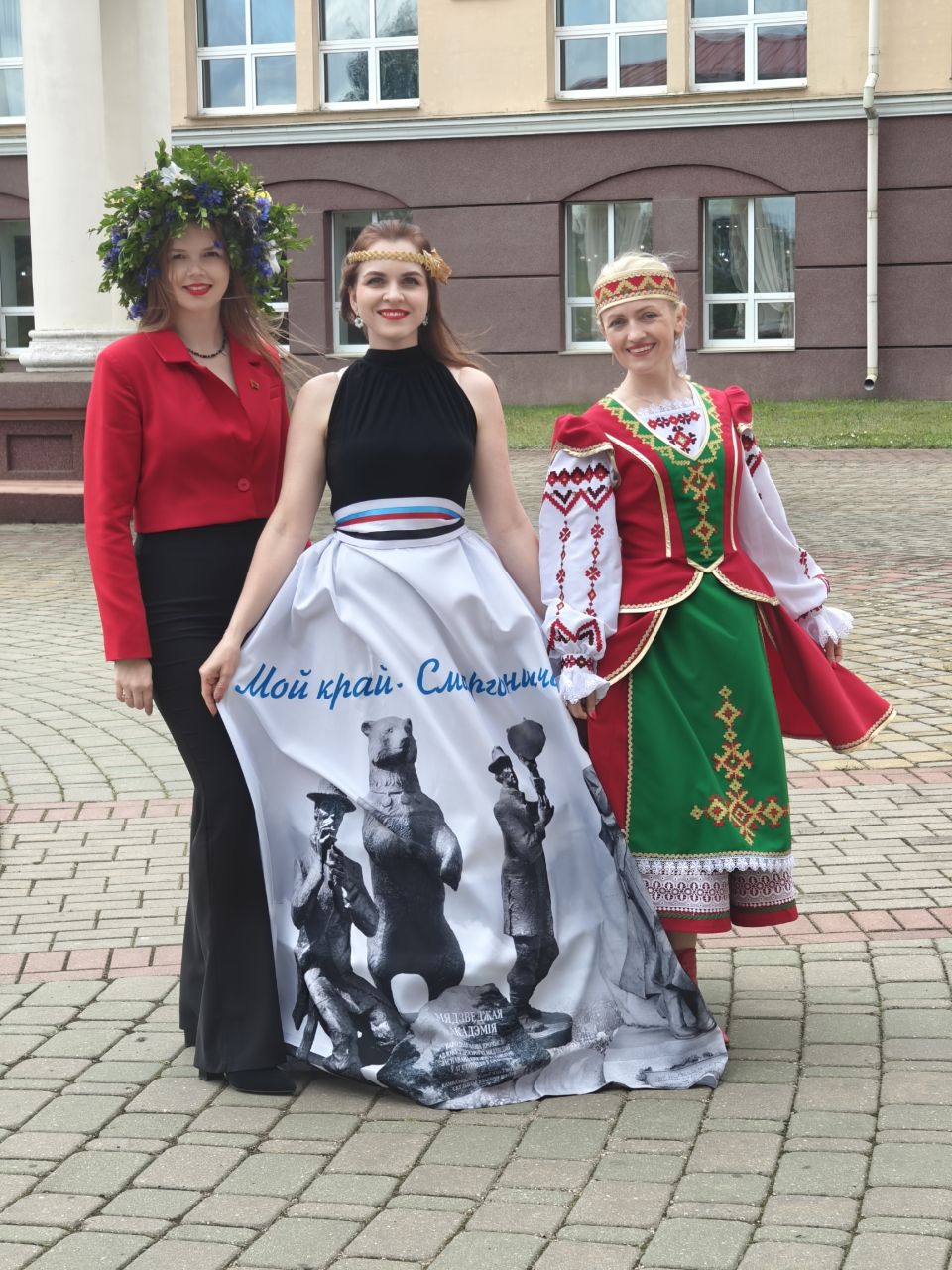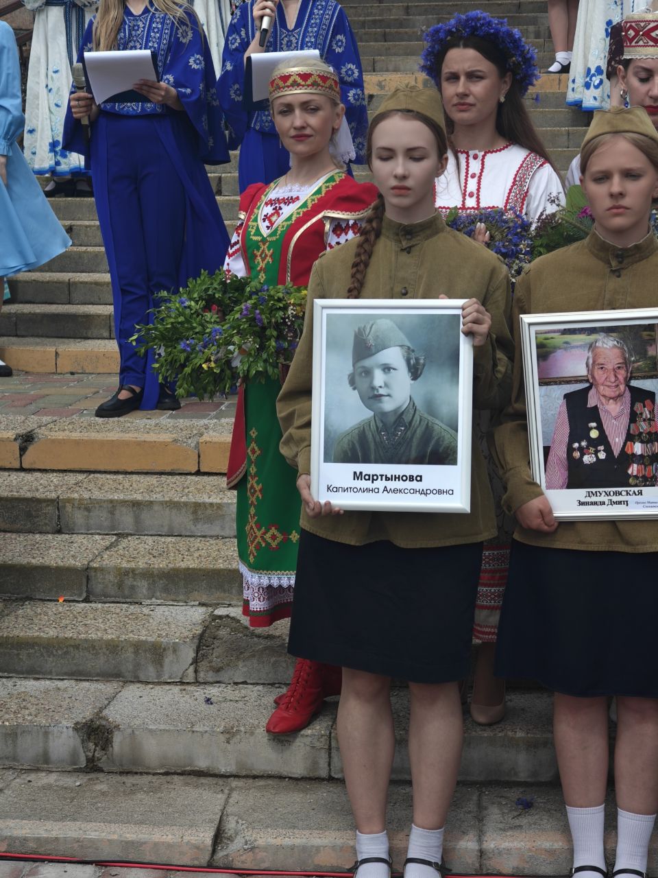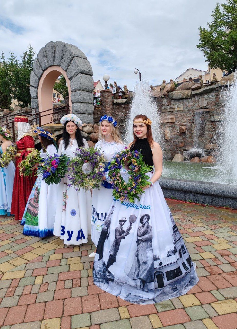 Завершилось торжество акцией ОО"Белорусский союз женщин" "Дзявочы вянок мiру". Мероприятие прошло на живописной набережной Гродно, на берегу величественного Немана. Посвящена акция 80-летию Великой Победы над немецко-фашистскими захватчиками. Каждый район Гродненщины отдал дань памяти конкретной женщине-ветерану, сплетя в их честь венок. В акции приняли участие учителя школы искусств Тамара Казакевич и Жанна Телего.