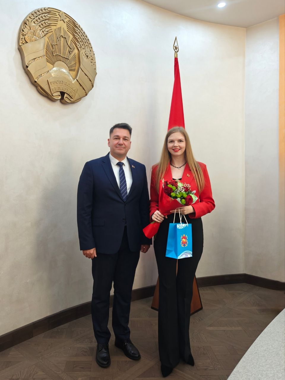 Учитель Сморгонской детской школы искусств имени М. К. Огинского, член Молодежного совета при Палате представителей Национального собрания Республики Беларусь Алеся Дудкина представляет Сморгонь торжественном приеме с руководством облисполкома по случаю Дня молодежи.