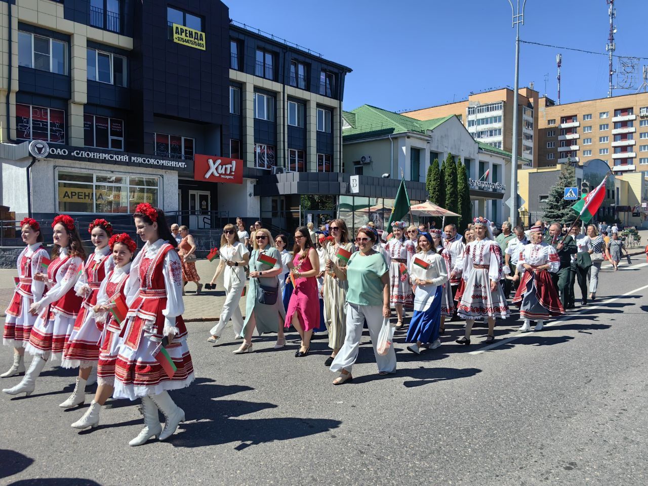 Начался день праздничным шествием "С гордостью за Беларусь" и торжественным митингом "Наследие освободителей в достижениях независимой Беларуси".