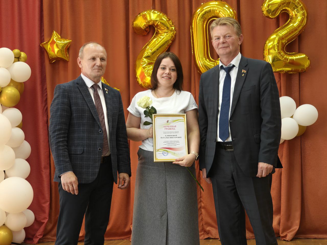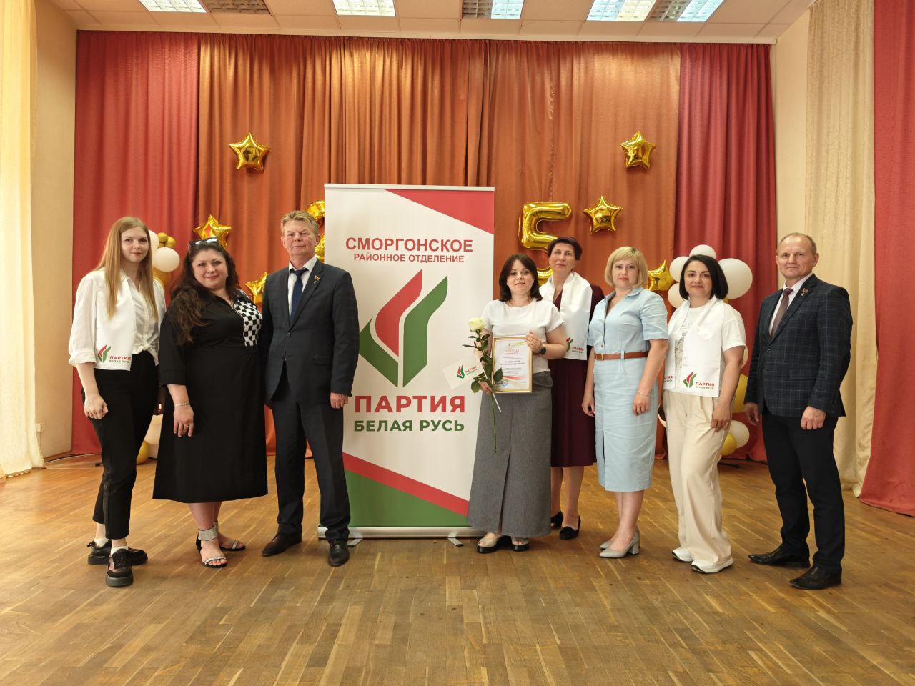 Елфимова Наталья Викторовна, директор Сморгонской ДШИ, награждена Почётной грамотой за активное участие в реализации программных целей и задач Партии, за значительный вклад в общественно-политическую жизнь Сморгонского района.