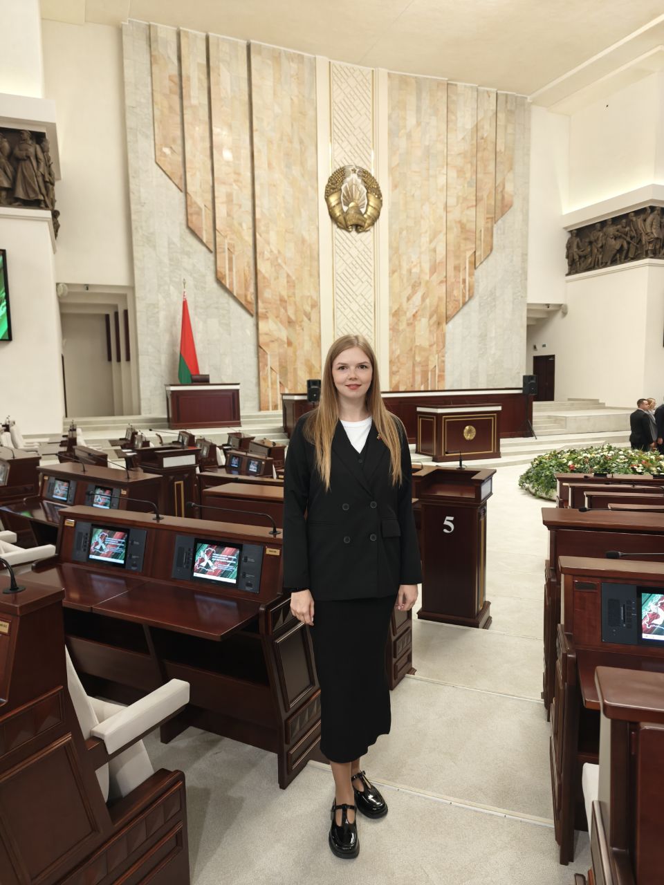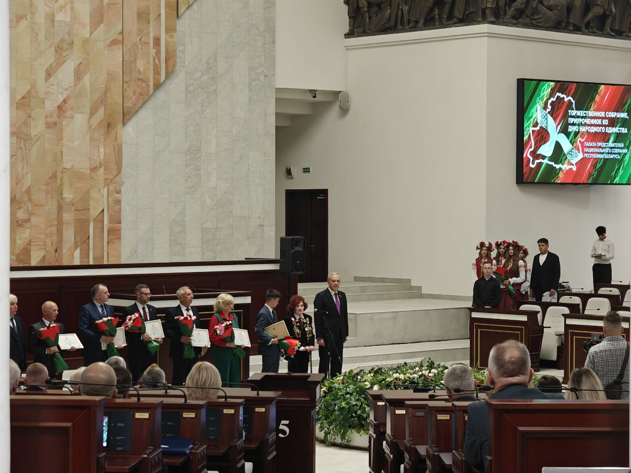 Заместитель директора по воспитательной работе Сморгонской детской школы искусств, член Молодежного совета при Палате представителей Национального собрания Республики Беларусь Алеся Дудкина приняла участие в торжественном собрании, посвященном Дню народного единства. Мероприятие прошло в Овальном зале Дома Правительства.