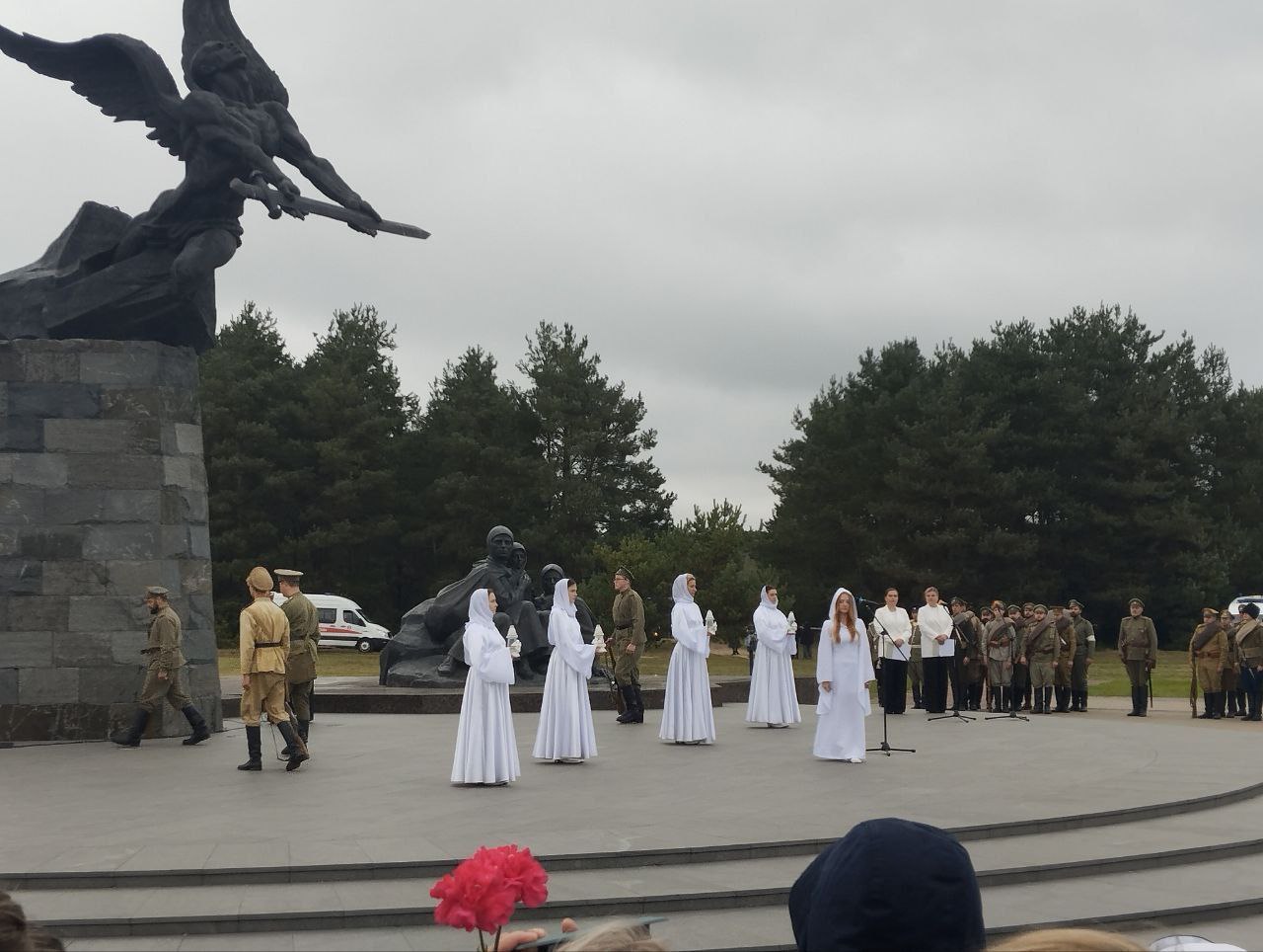 Учителя Сморгонской ДШИ и члены РОО "Белая Русь" приняли участие в митинге-реквиеме "Помним героев огненных лет", который прошел у мемориала жертвам Первой мировой войны.