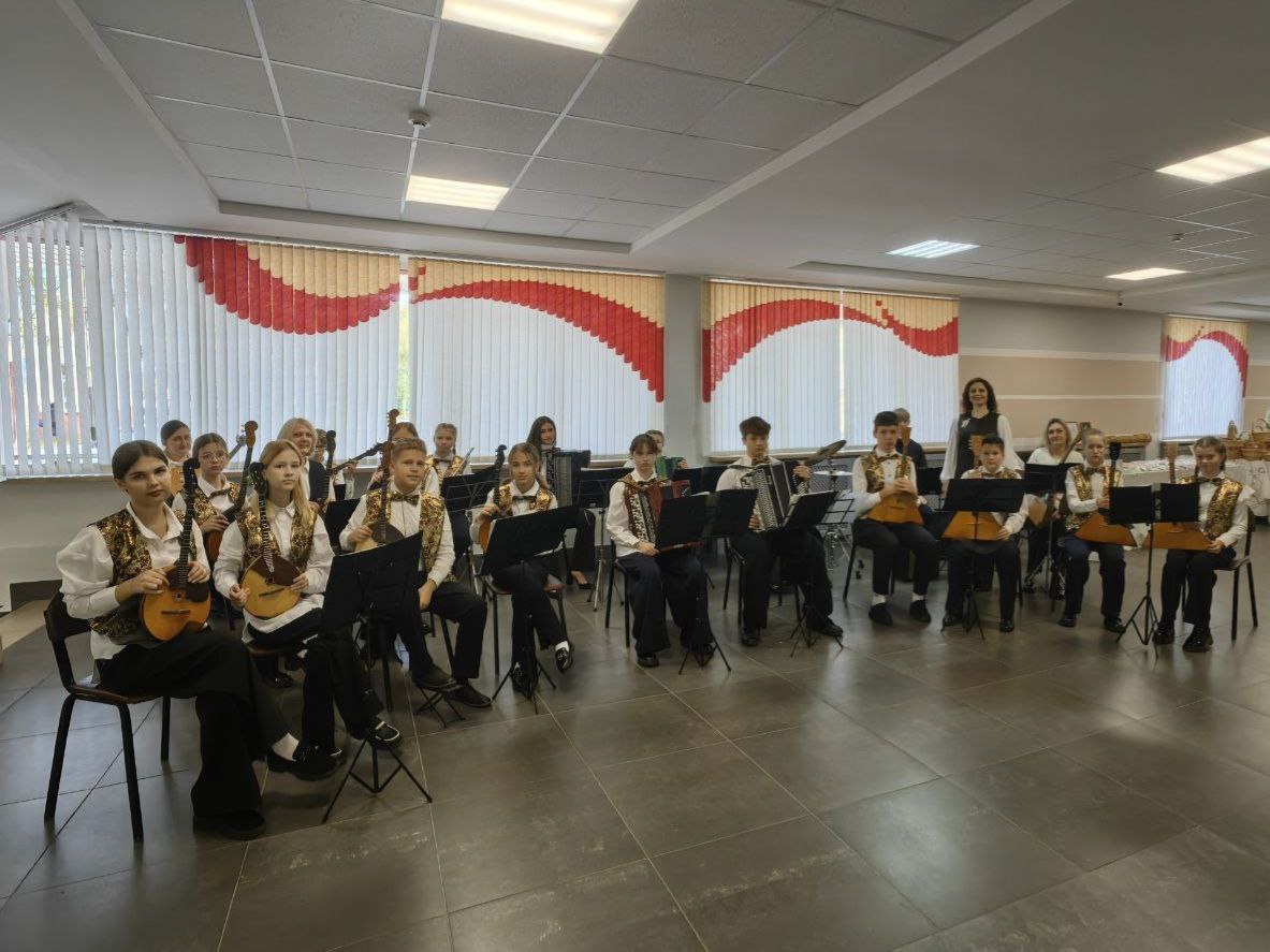 Образцовый оркестр русских народных инструментов ГУО"Сморгонская детская школа искусств имени М.К.Огинского" (руководитель Марина Смушко) встречал гостей торжественного мероприятия "О тех, кто годы не считает", посвященного Дню пожилого человека.