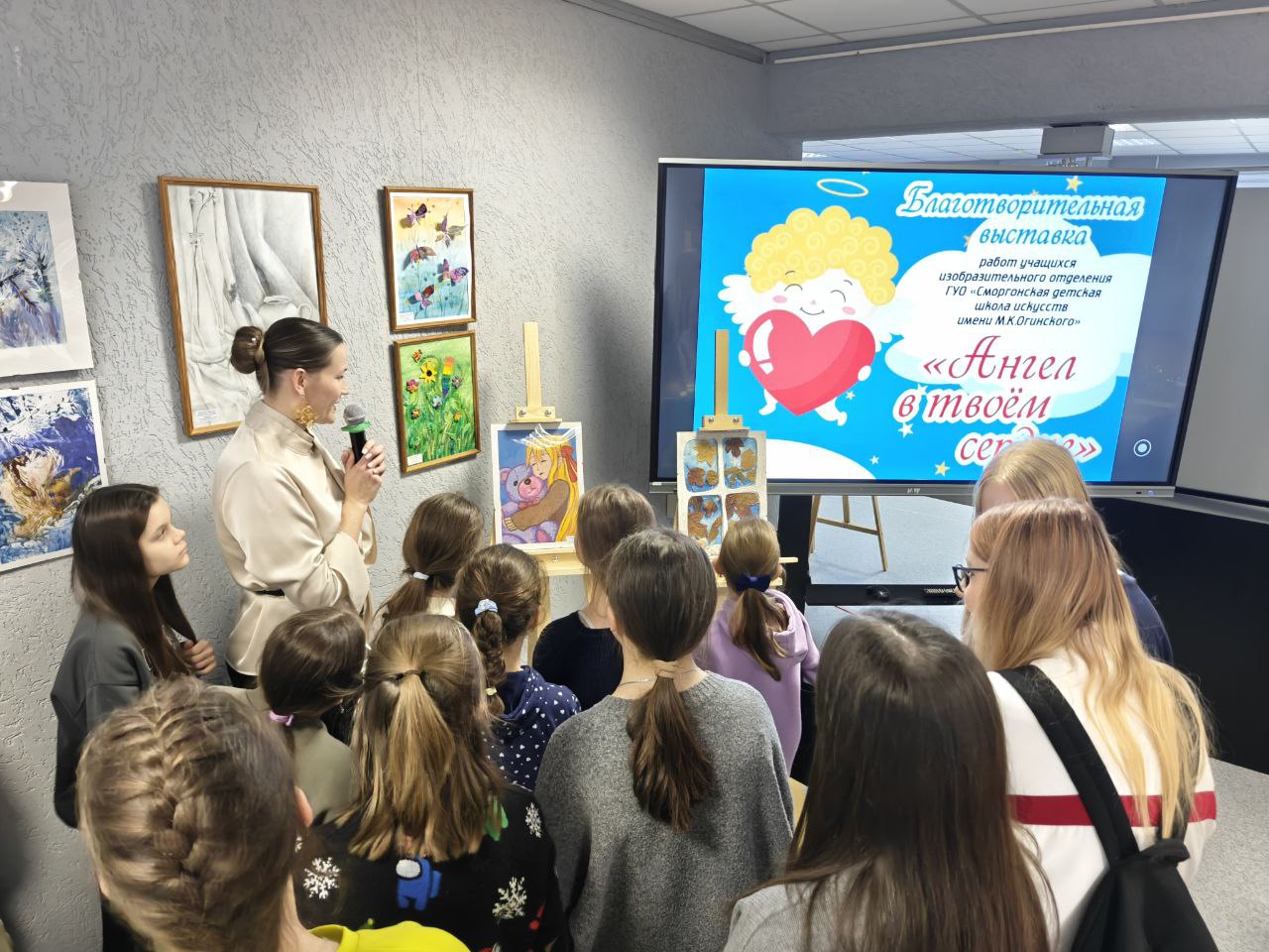Благотворительная выставка работ учащихся изобразительного отделения Сморгонской детской школы искусств «Ангел в твоём сердце» открылась сегодня в историко-краеведческом музее.