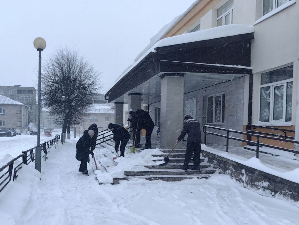 Сморгонская детская школа искусств продолжает работу по расчистке прилегающей территории своего учреждения от снега.