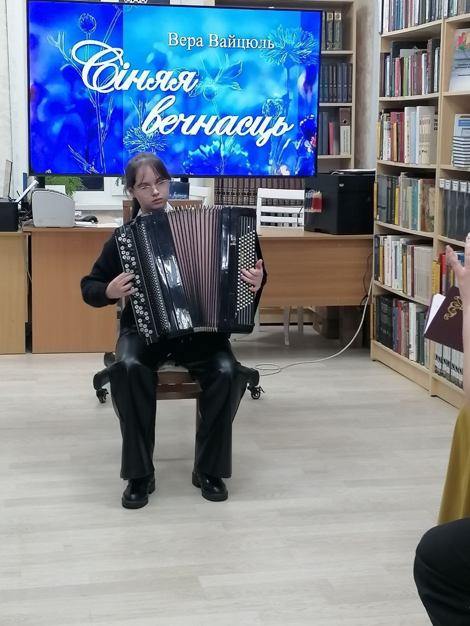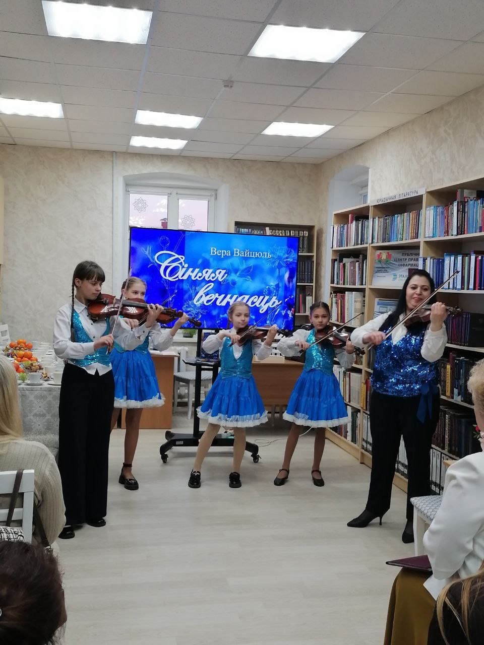 Учащиеся и учителя Сморгонской детской школы искусств выступили на творческой встрече и презентации новой книги стихов сморгонской поэтессы Веры Войтюль «Синяя вечность».