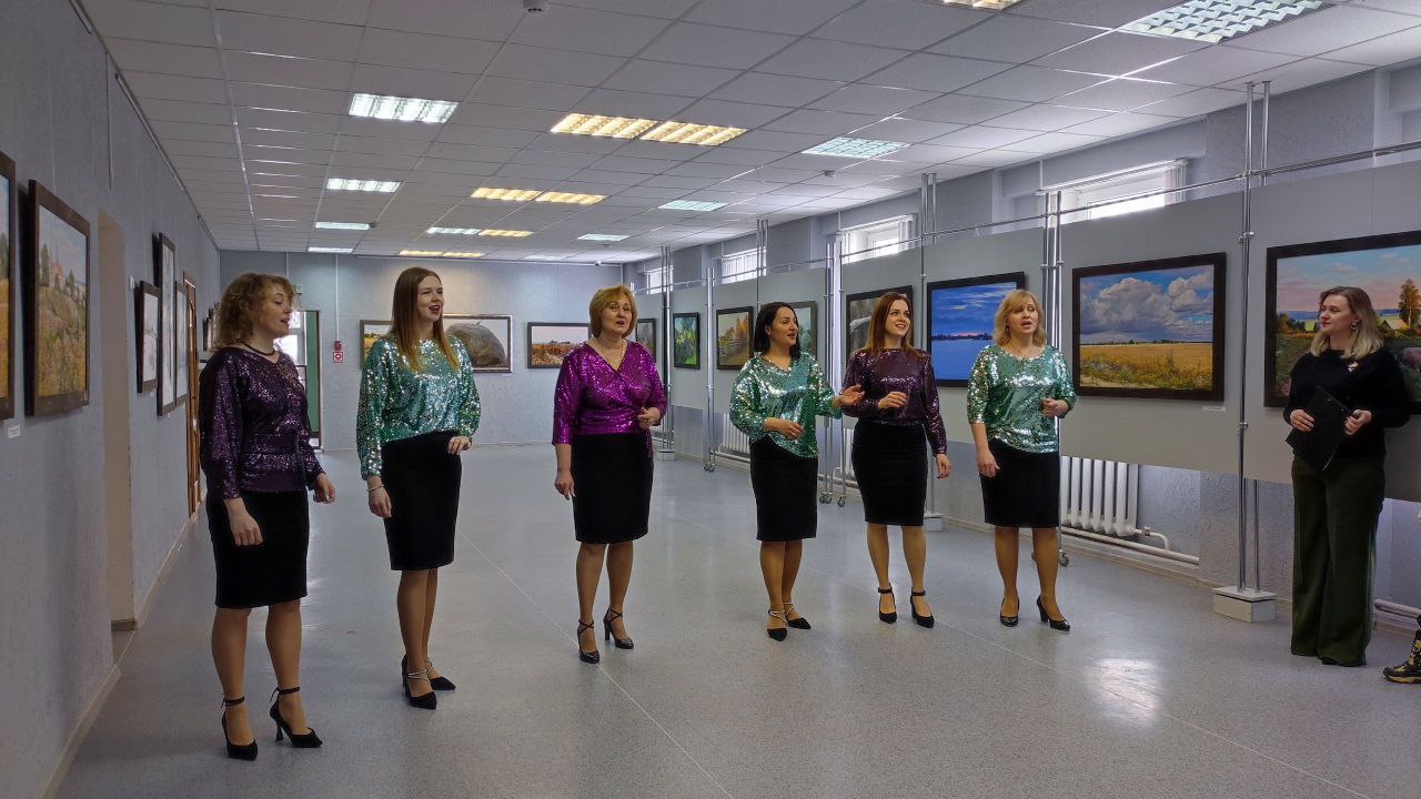 Народная вокальная группа "Кантабиле" (руководитель Елена Шафранская) Сморгонской ДШИ выступила на открытии выставки "Пейзажы маёй Радзімы" художника Вячеслава Августиновича в Сморгонском историко-краеведческом музее.
