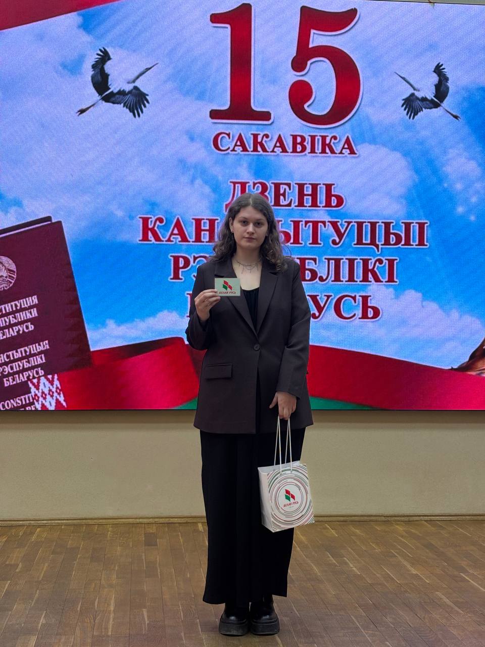 В преддверии Дня Конституции учитель изобразительного отделения ГУО«Сморгонская детская школа искусств имени М.К.Огинского» Юлия Харченко приняла участие в торжественной церемонии вступления учащихся и молодежи в ряды общественных объединений. На мероприятии Юлии Ивановне вручили членский билет РОО"Белая Русь".