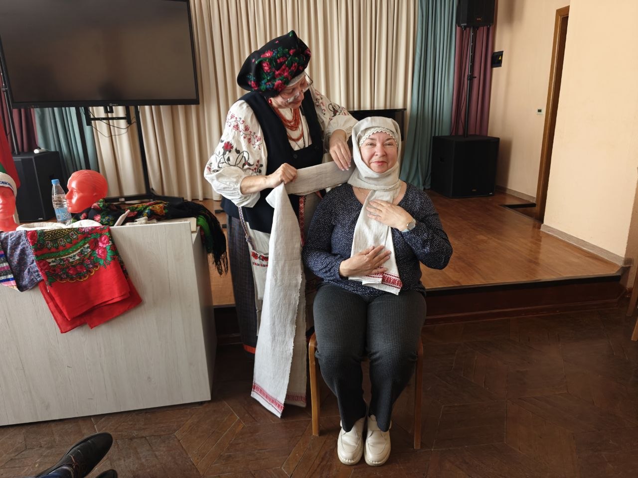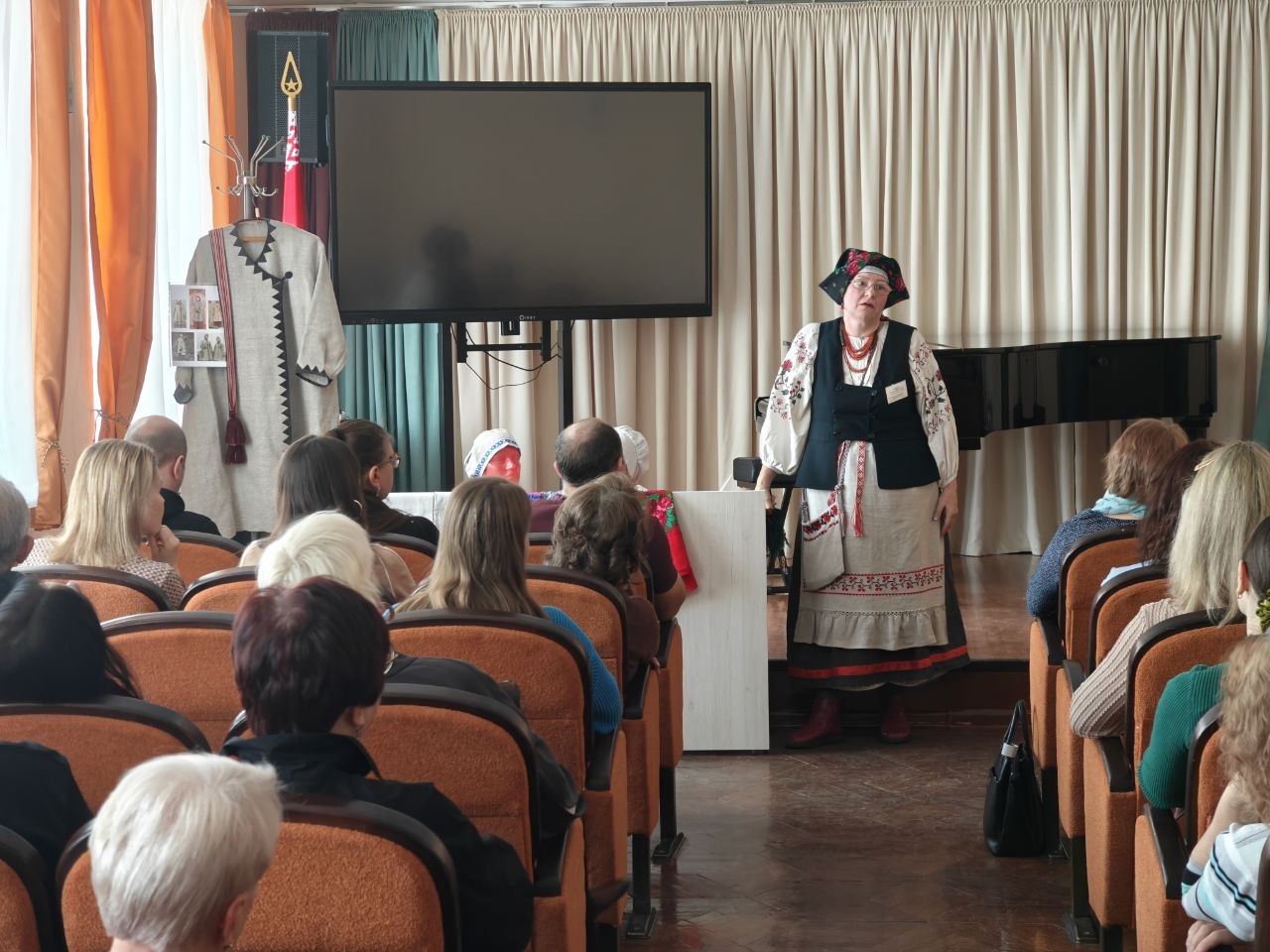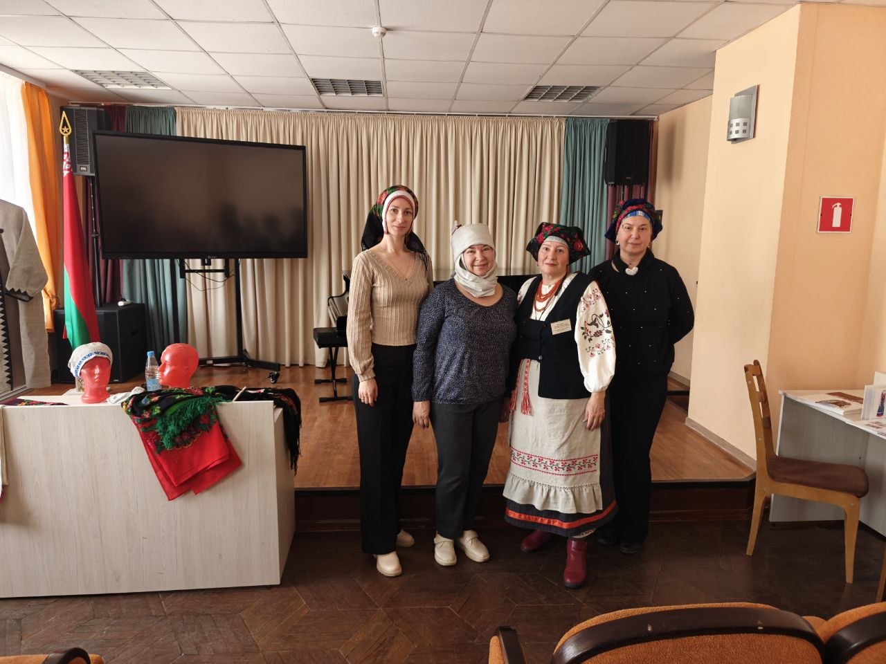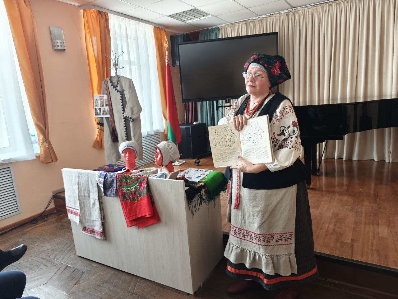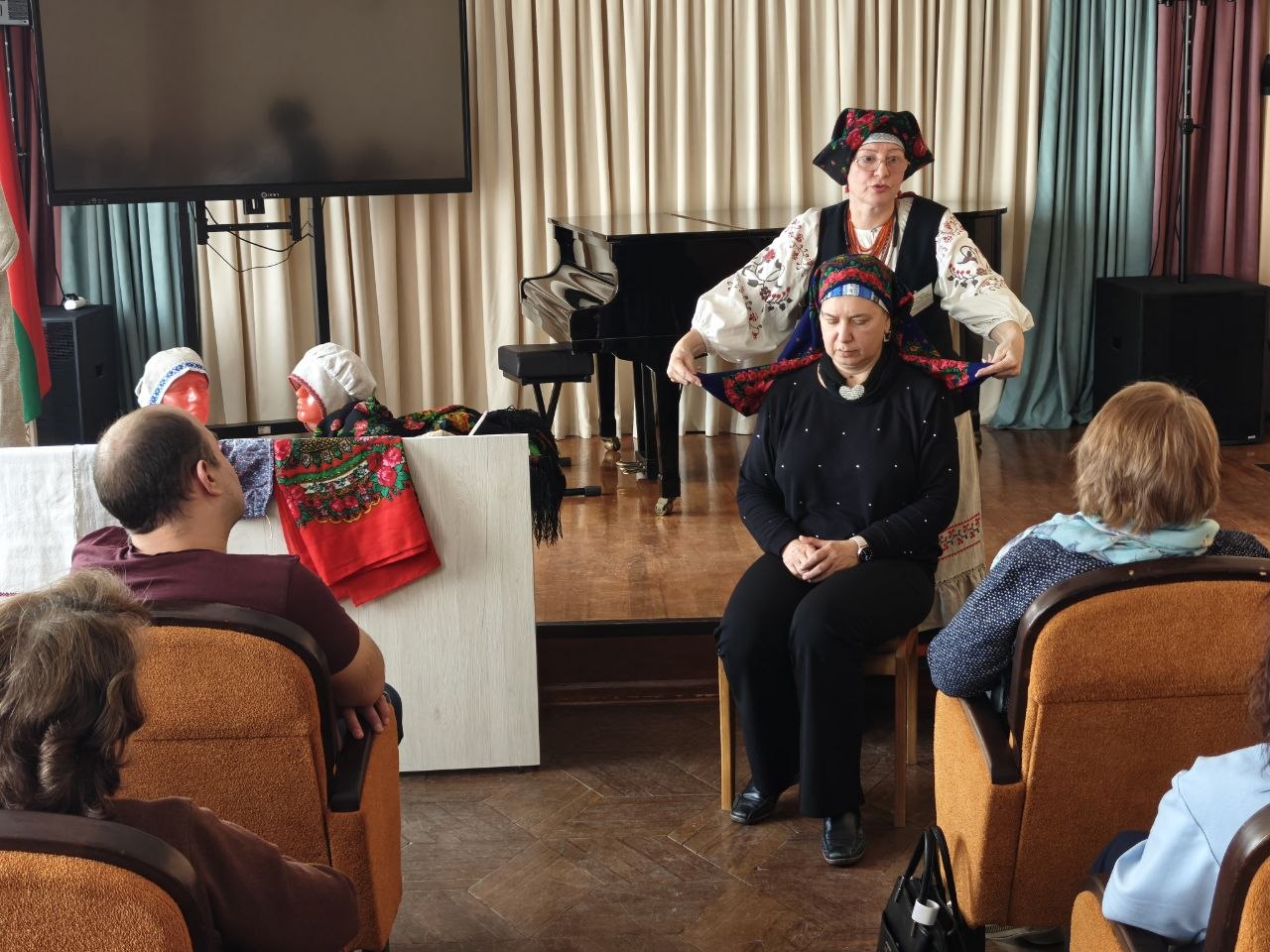 Людмила Николаевна рассказала об истории белорусского костюма, традициях ношения и символах, которые могут означать разные элементы одежды. На мастер-классе также продемонстрировали технику надевания головных уборов.